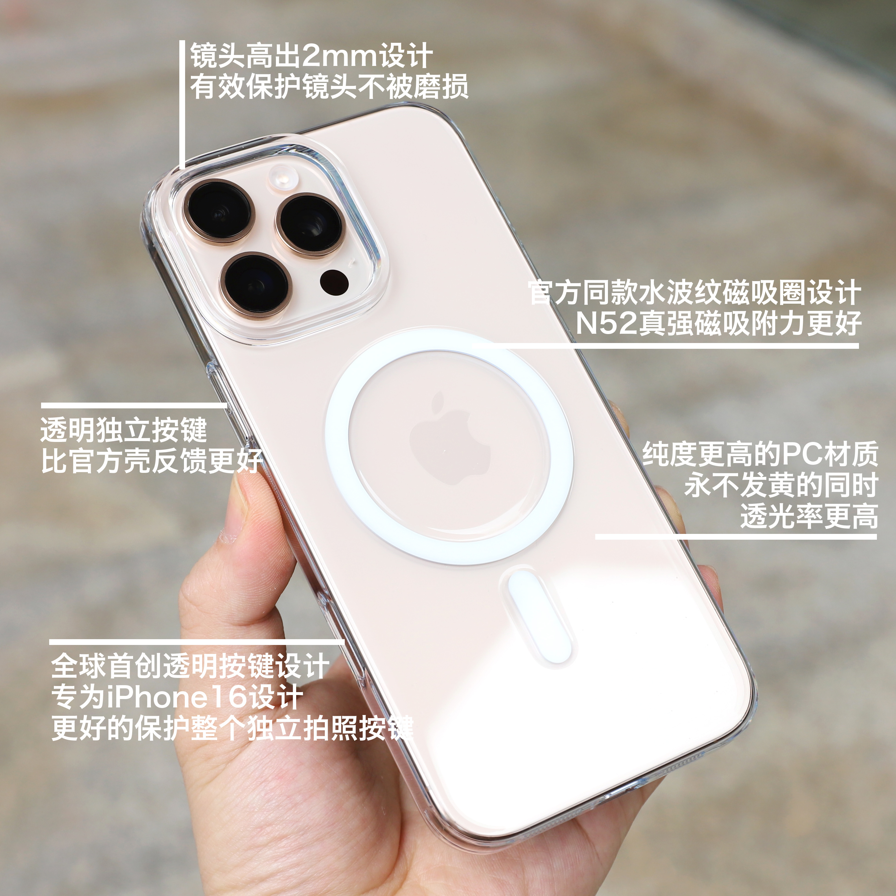 【全球首创透明AI拍照按键】2025新款极润透明磁吸壳适用于iPhone17ProMax全包防摔抗氧化16纯PC硬壳15保护壳