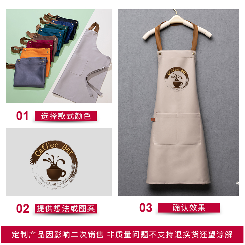 挂脖防泼水围裙logo印字工作服围腰厨房水果美甲餐饮饭店防水帆布