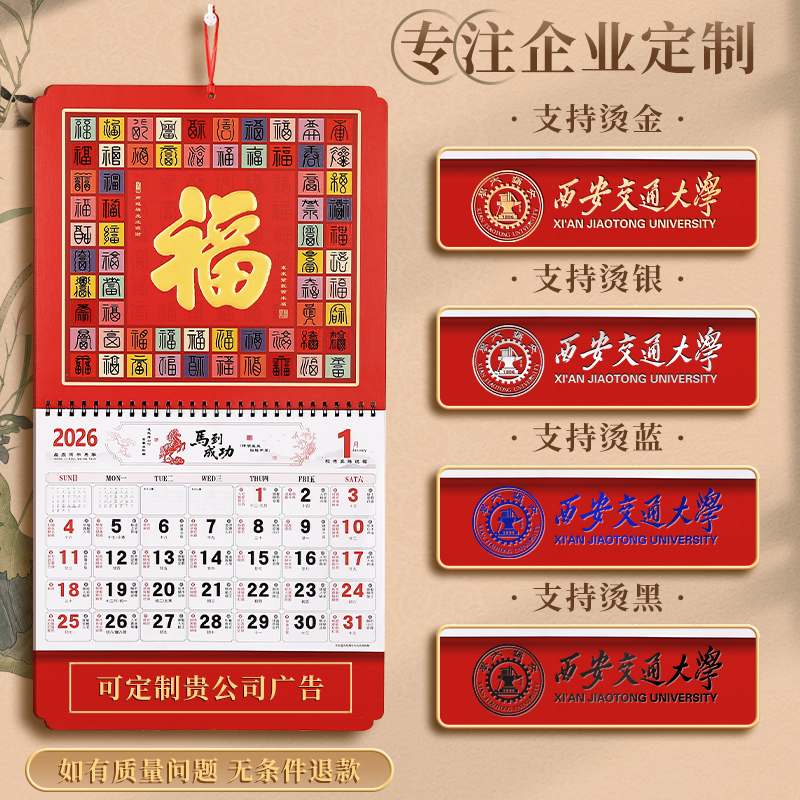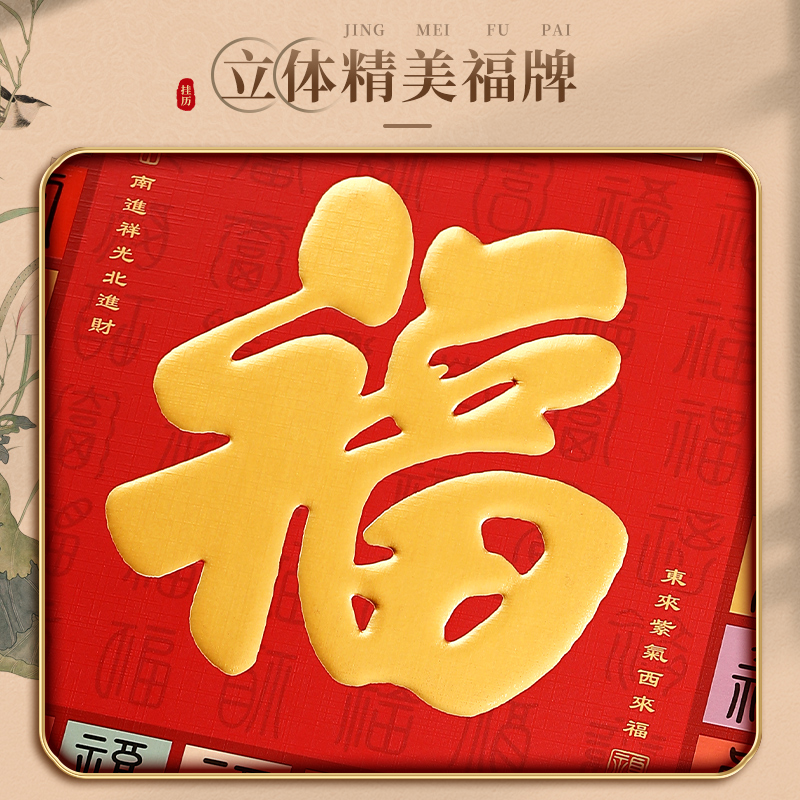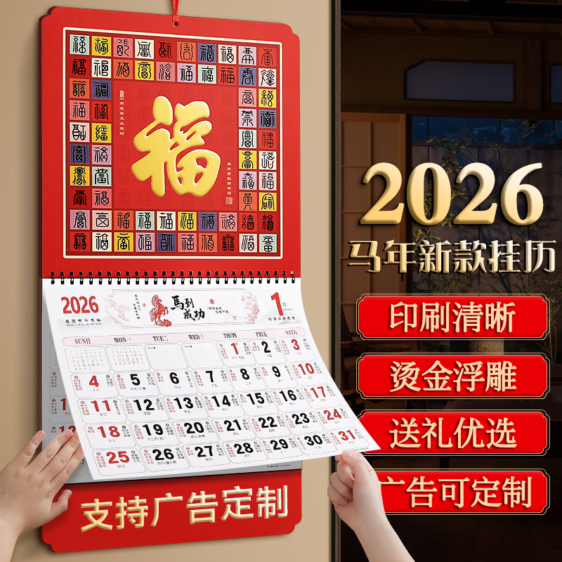 2026新款新年挂历日历月历一体传统福字民俗创意年历家用墙面装饰带老黄历宜忌日历企业广告定制logo节日送礼