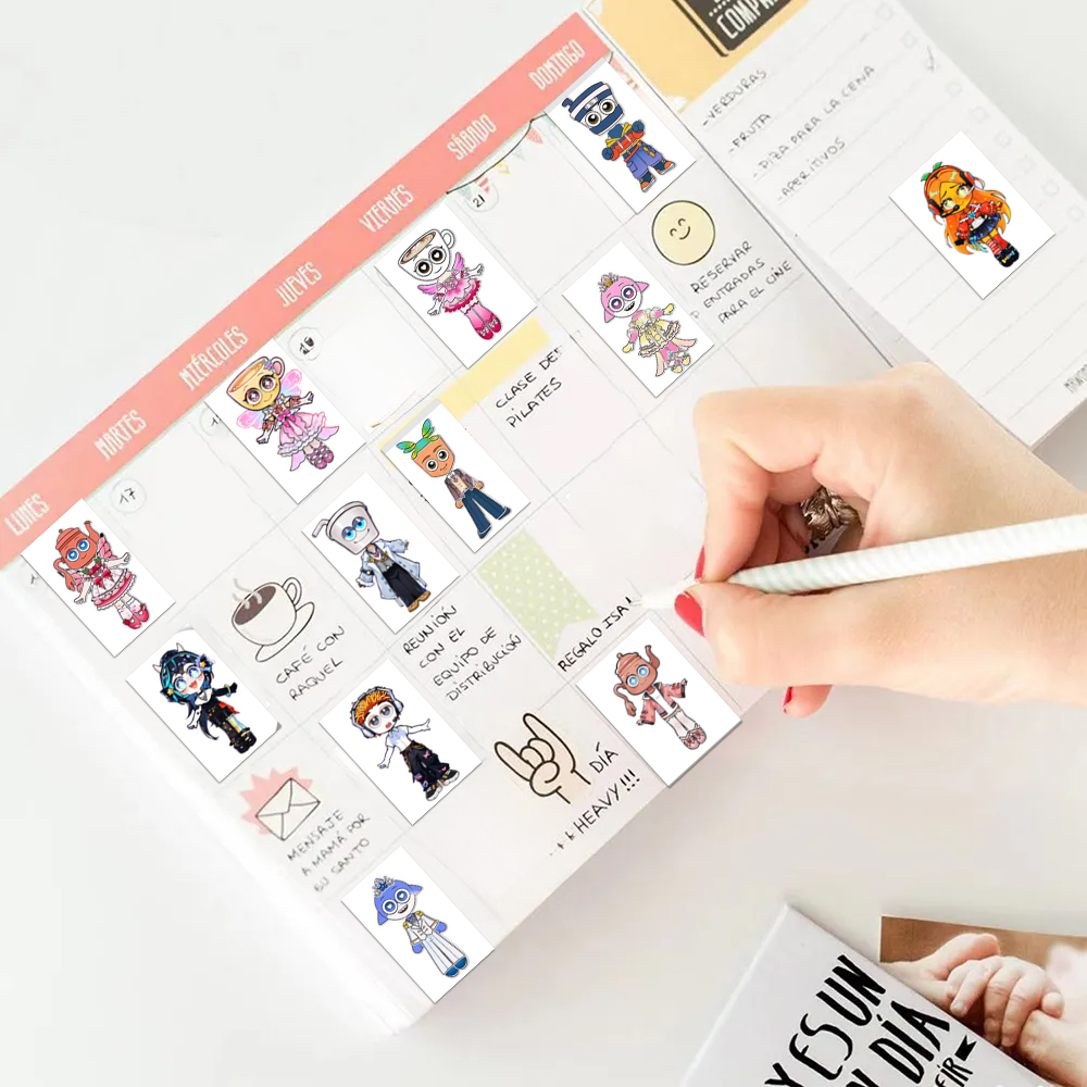 新款外国山海经卷卷贴儿童趣味茶壶人咖啡小姐拟人周边自粘封口贴
