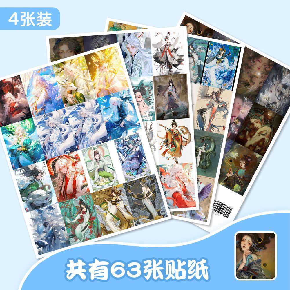 【大图释官方授权】126张山海经拟人化插画贴纸异兽酷帅图案高颜值贴画手机手账本diy自粘行李箱玩具装饰贴纸