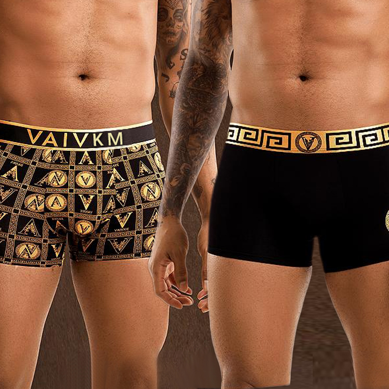 男士内裤男黑金四角裤夏季透气大码抗菌高档纯棉平角短裤磁疗磁石