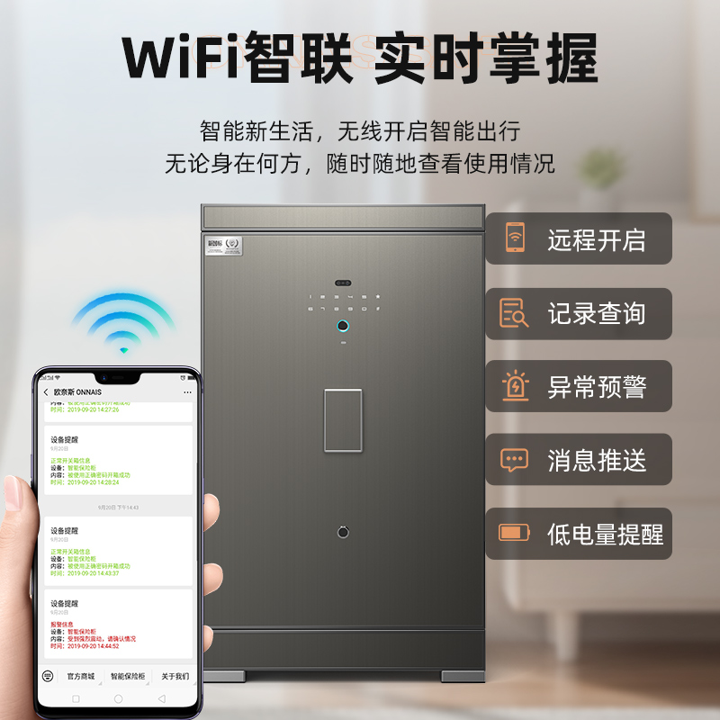 欧奈斯保险柜新款家用小型智能防盗防火SSS国标认证搬不走的保险箱指纹床头柜办公室高端重型夹万全钢防撬