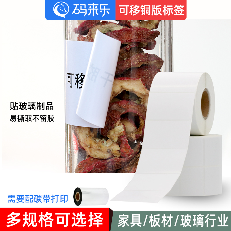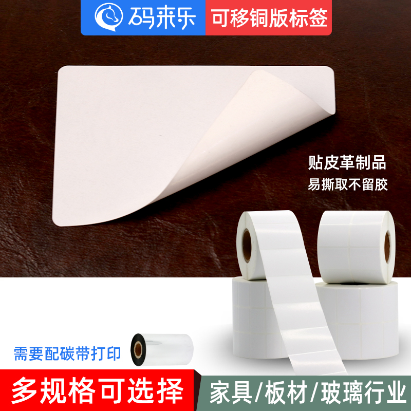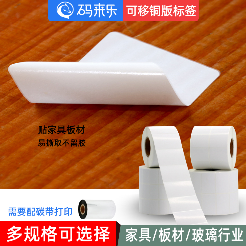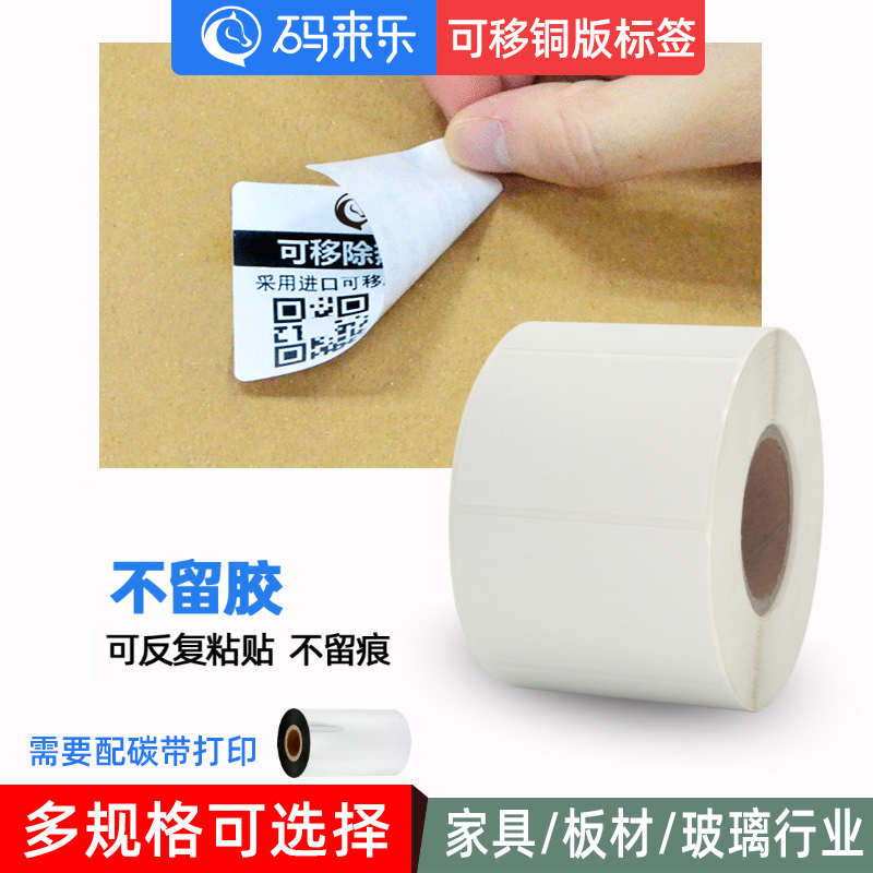 铜版可移标签打印纸100 90 80 70 60 50 40 30打印贴不干胶可移除不留胶条码纸家具玻璃塑料反复粘贴条码标签