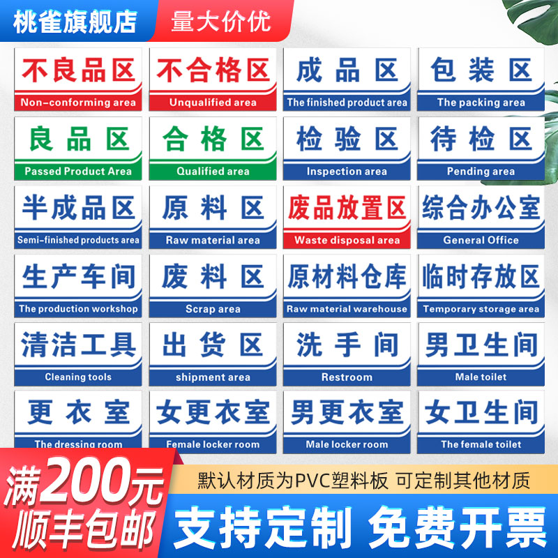 热销定做制工厂车间区域标识牌仓库分区验厂划分亚克力悬挂门牌办