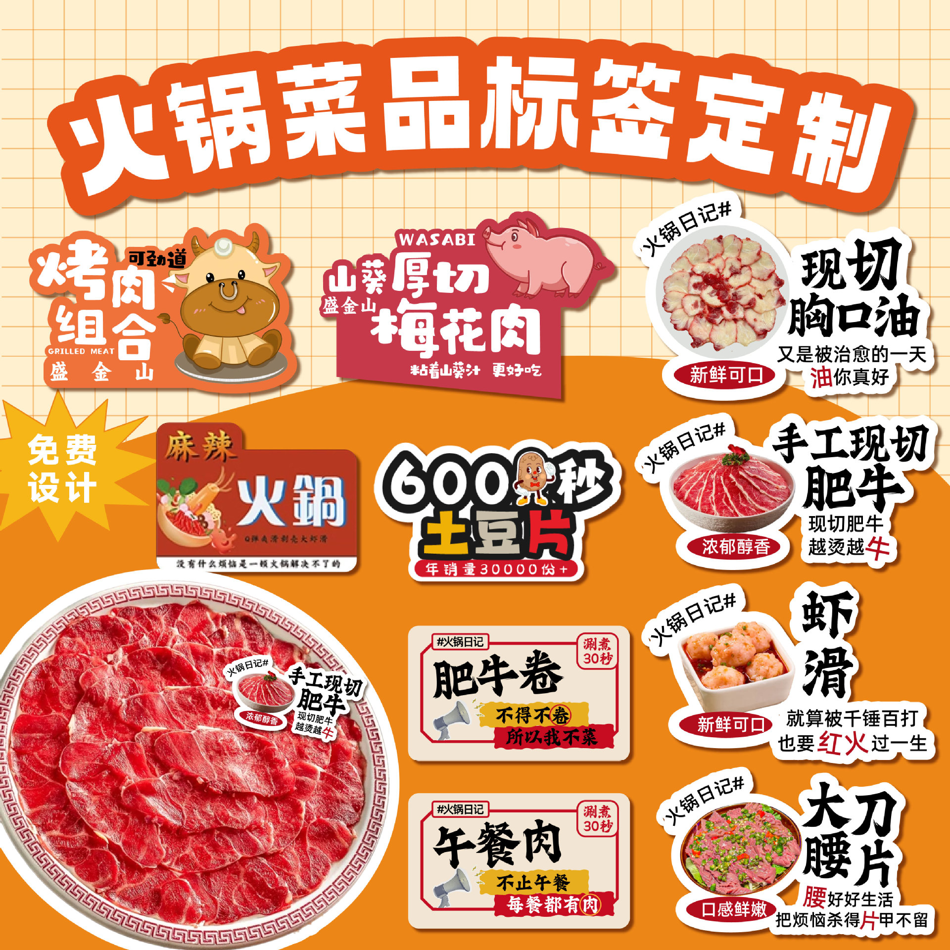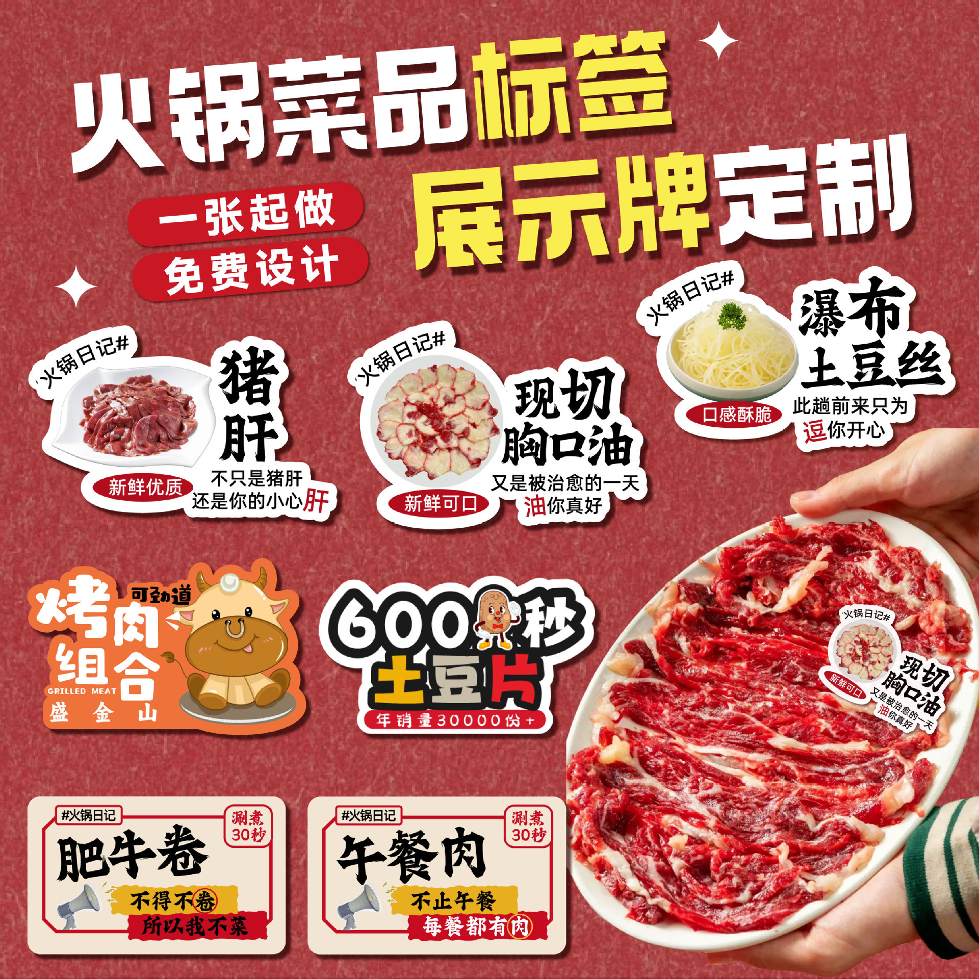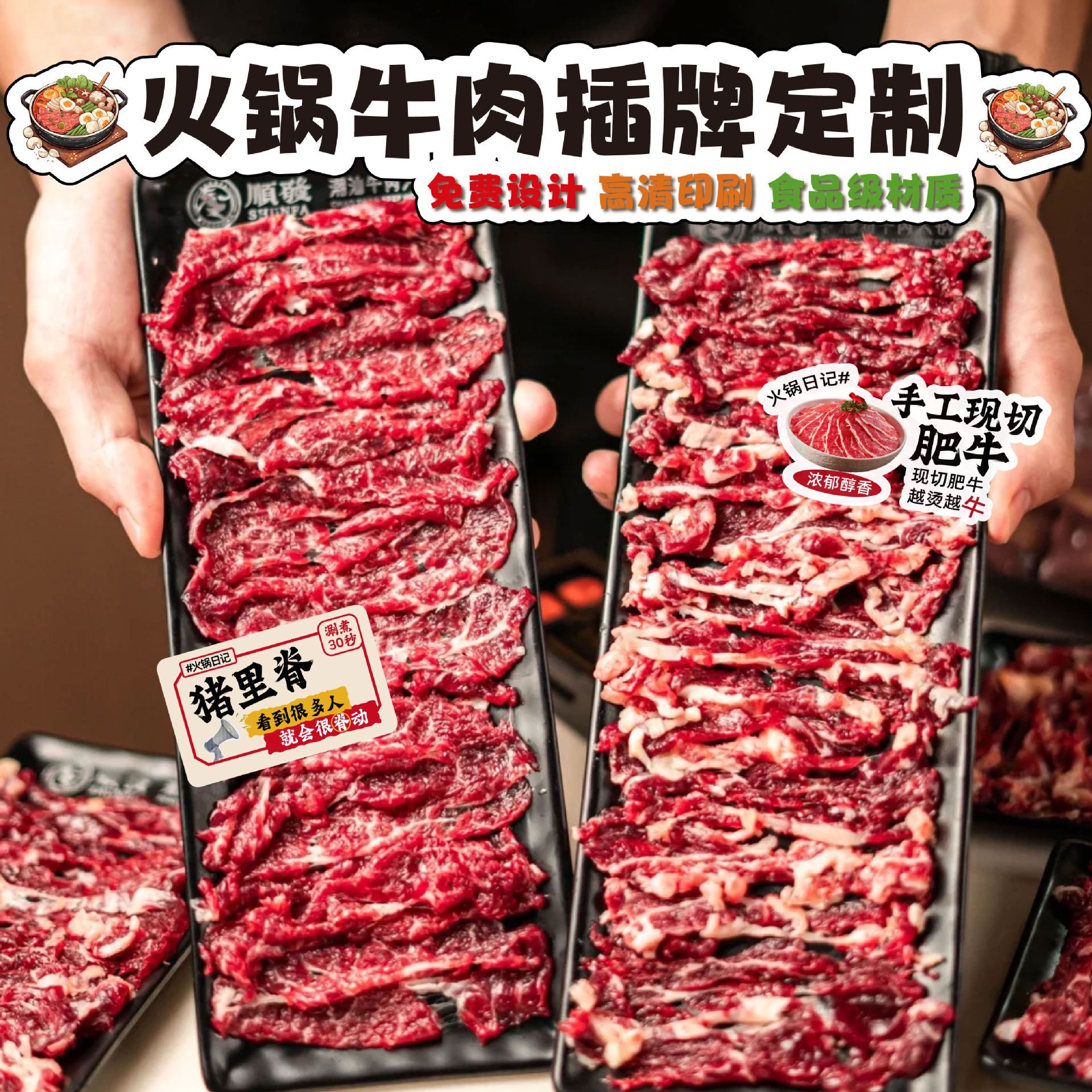 火锅店菜品标签牌牛羊肉涮煮时间异形插卡自助餐海鲜分类卡片