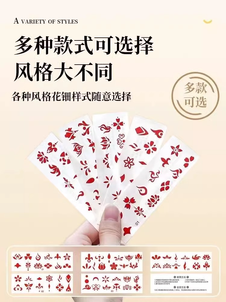 花钿古装眉心贴儿童额头印花婴儿古风女童宝宝红点汉服成人贴过年发饰男孩汉唐朝古韵新年粘贴图案防水无毒