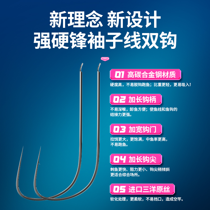 川泽强硬锋袖鱼钩正品绑好的子线双钩成品黑坑防缠绕鲫鱼钩竞技袖