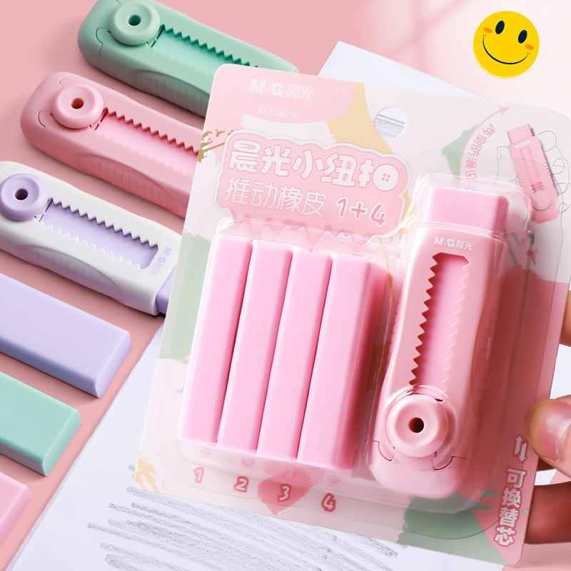 晨光文具定制刻名字推拉橡皮擦小学生专用不易留痕超干净擦字成线橡皮儿童学习用品幼儿园推动式铅笔象皮擦