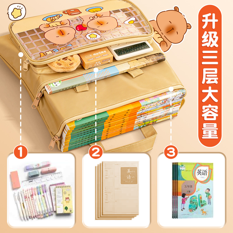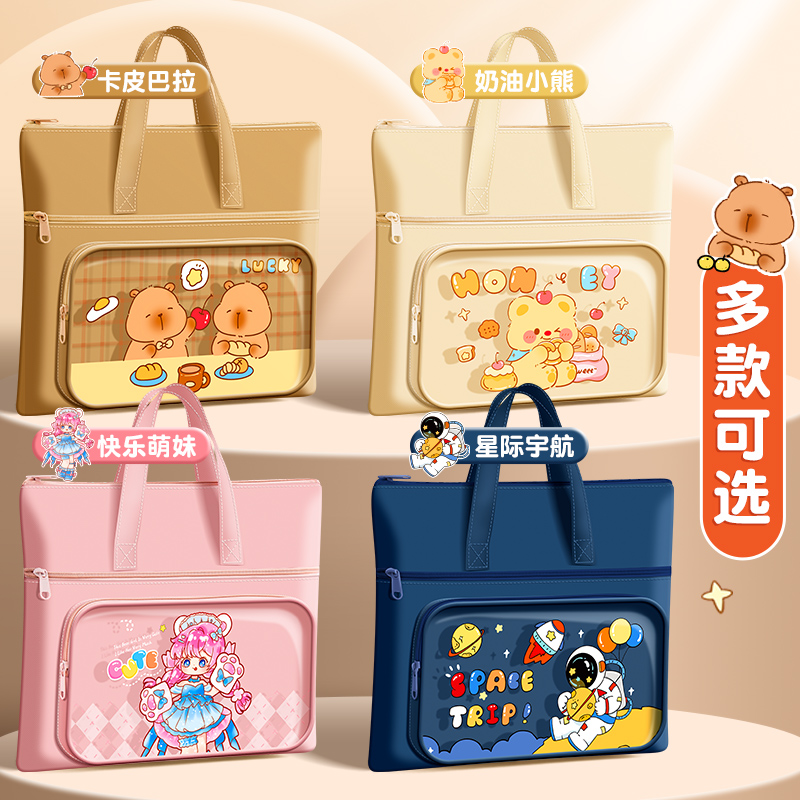 卡皮巴拉补习袋男孩女孩大容量拉链式多功能轻便款初中学生大号学习作业手提手拎补课包儿童小学生拎书袋防水