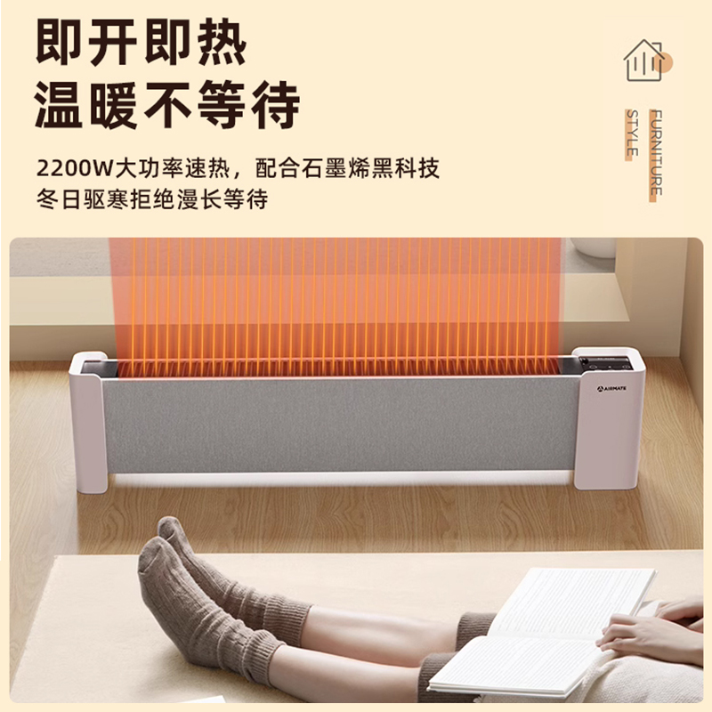 艾美特石墨烯踢脚线取暖器家用节能省电客厅卧室速热烤火炉电暖器