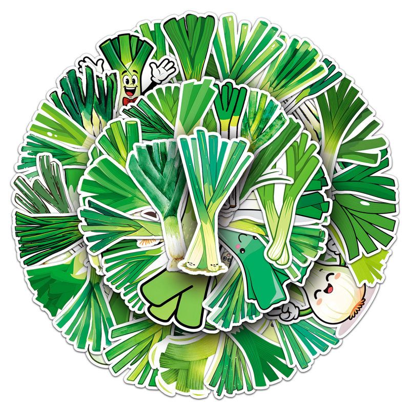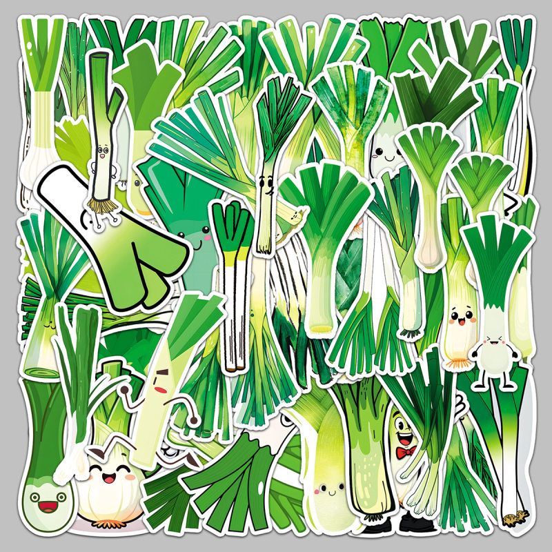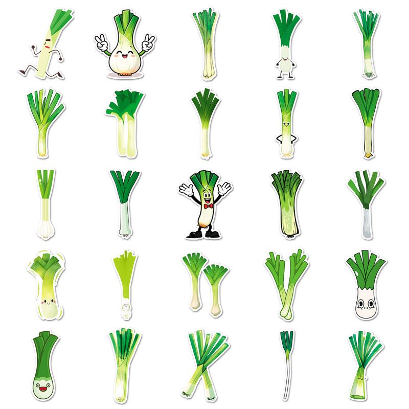 50张东北大葱贴纸食物植物调味品卡通涂鸦冰箱桌面手机壳防水贴纸