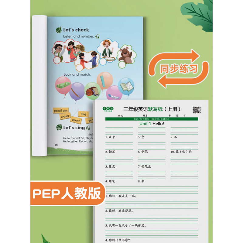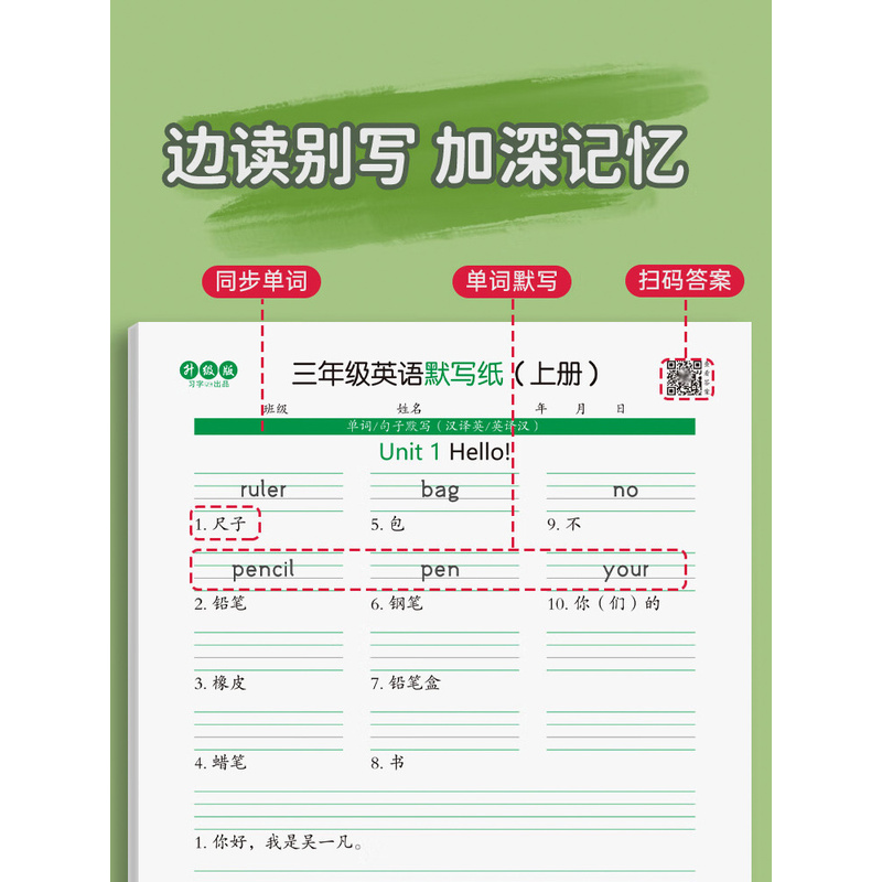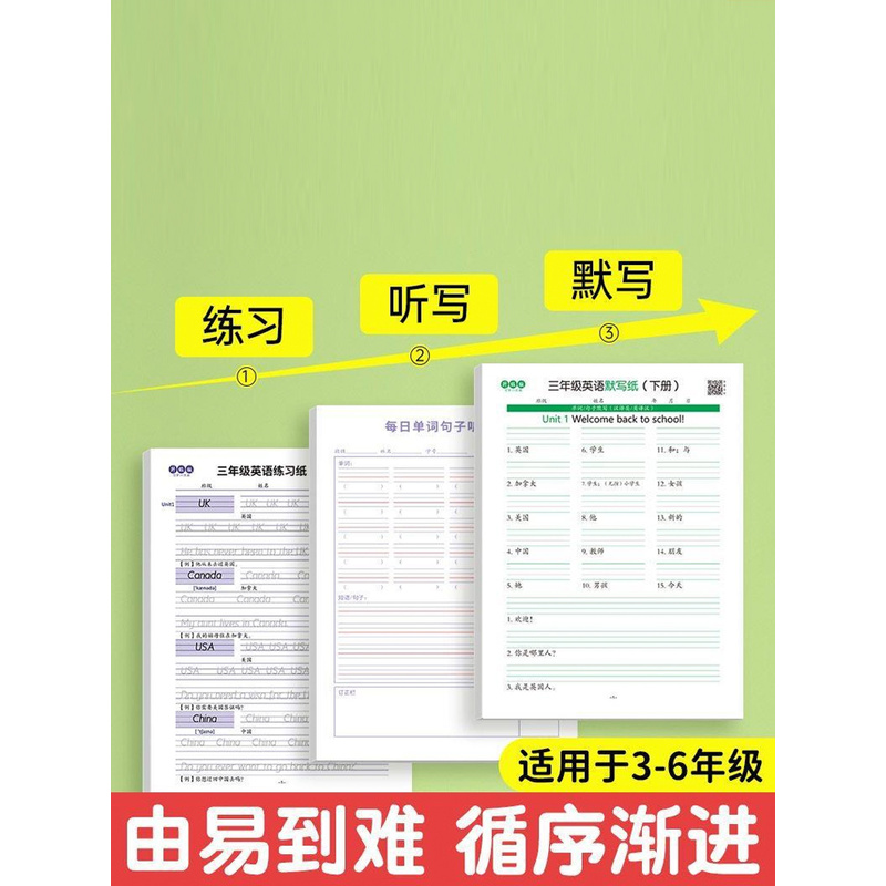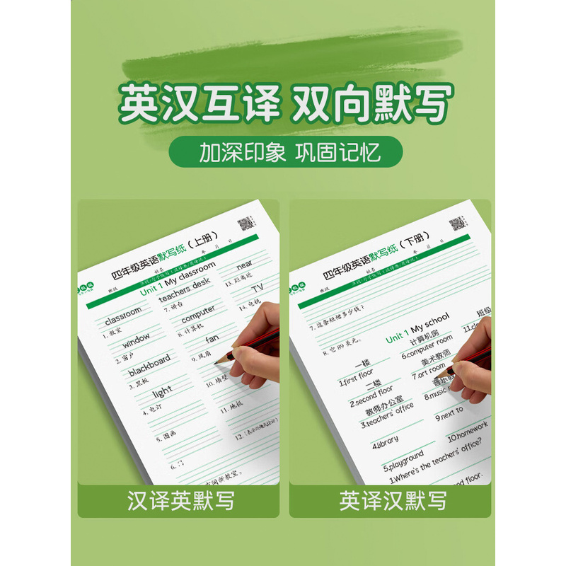 三年级英语默写纸PEP人教版同步英文单词句子抄写练习纸儿童小学生四五六年级上册下册英汉互译作业本听写纸