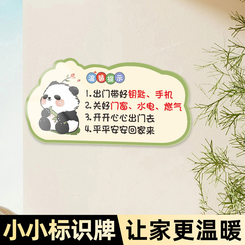 出门提醒牌温馨提示牌亚克力墙贴关煤气家用要带手机钥匙贴纸创意可爱卡通装饰门牌关门窗出门检查水电气定制