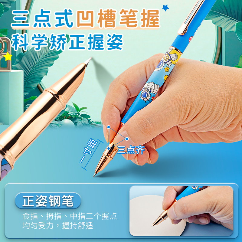英雄牌钢笔小学生三年级专用正姿练字高颜值可替换墨囊四年级男女孩儿童初学者中学生可爱卡通钢笔官方旗舰