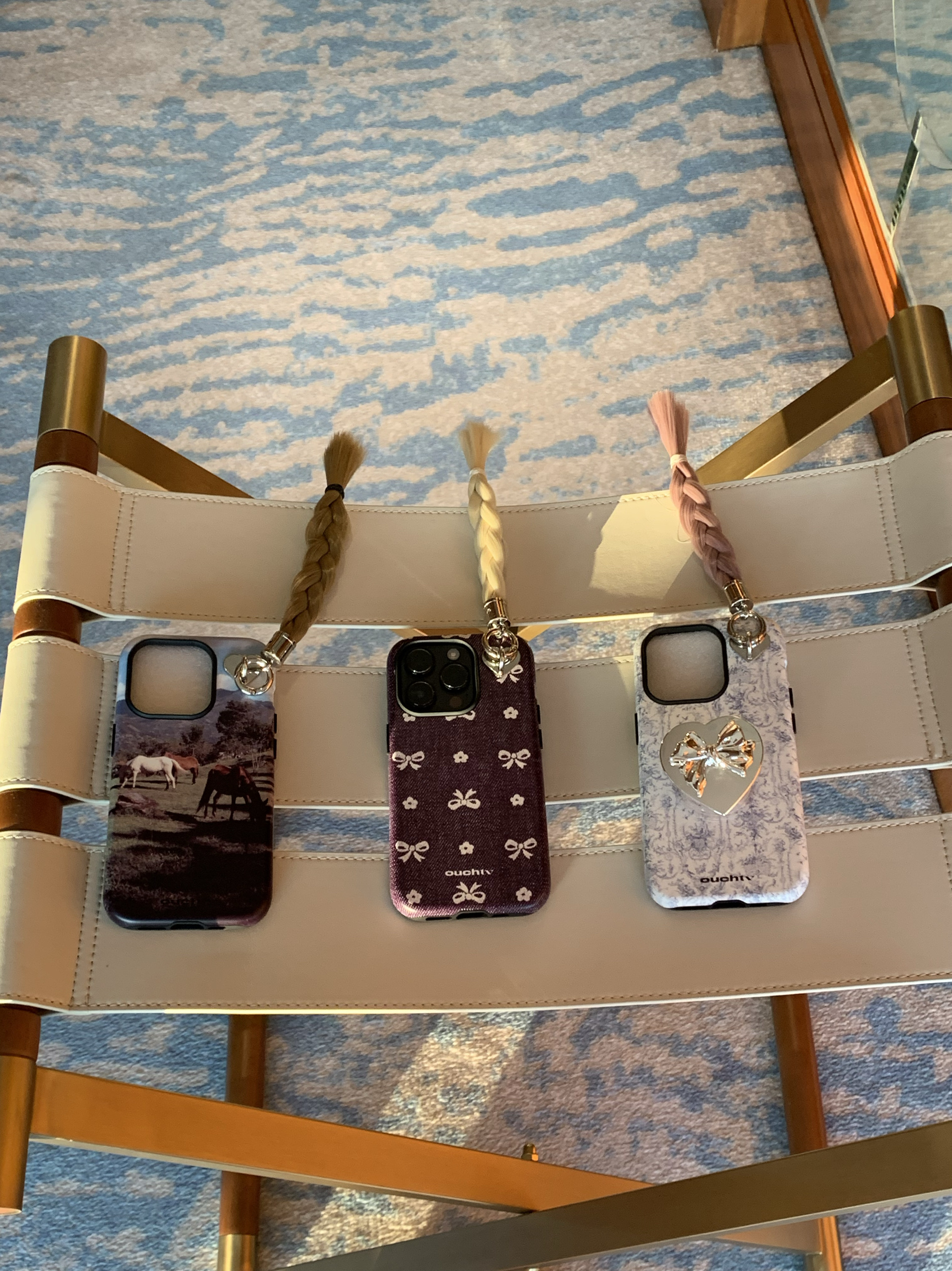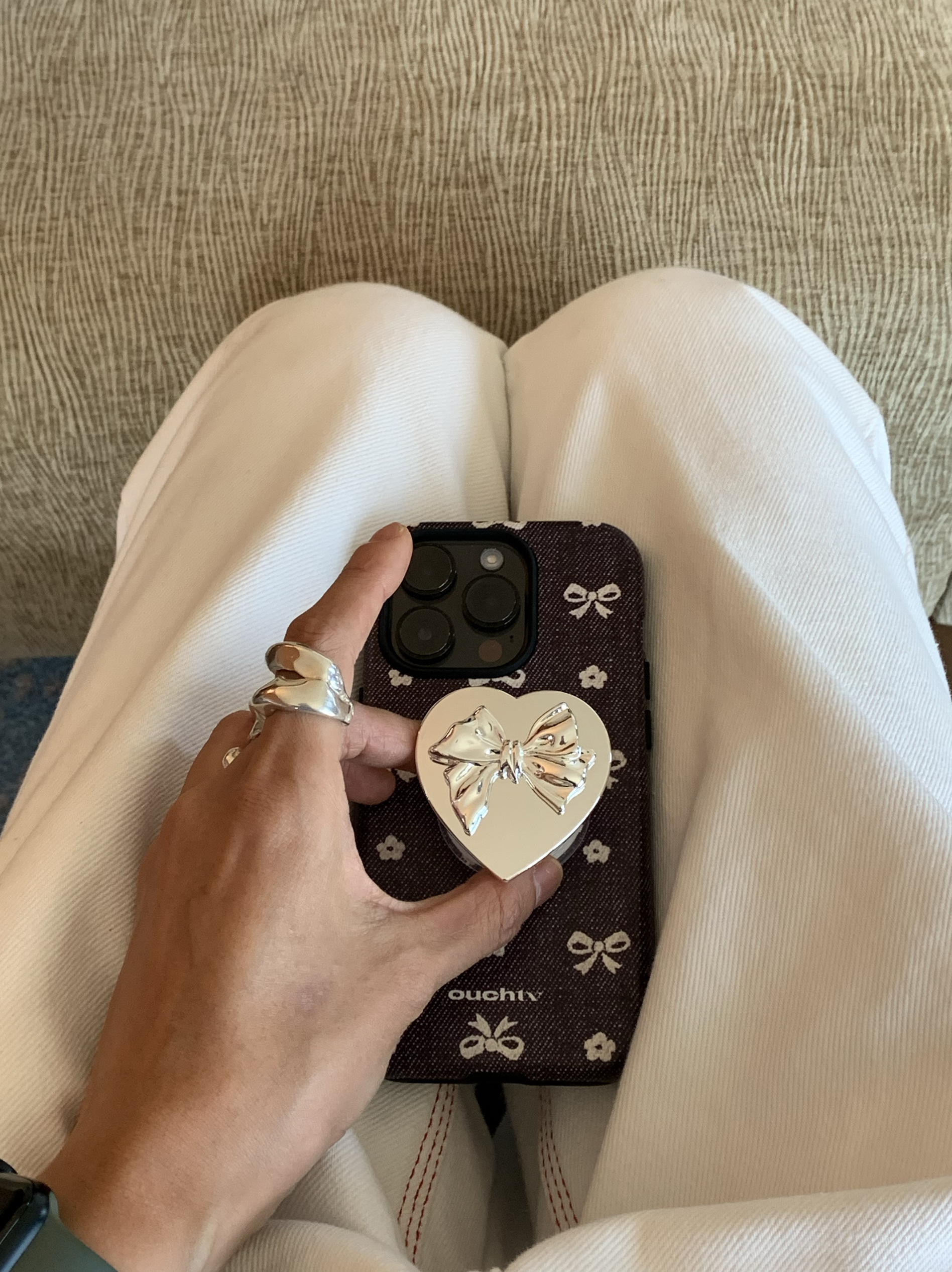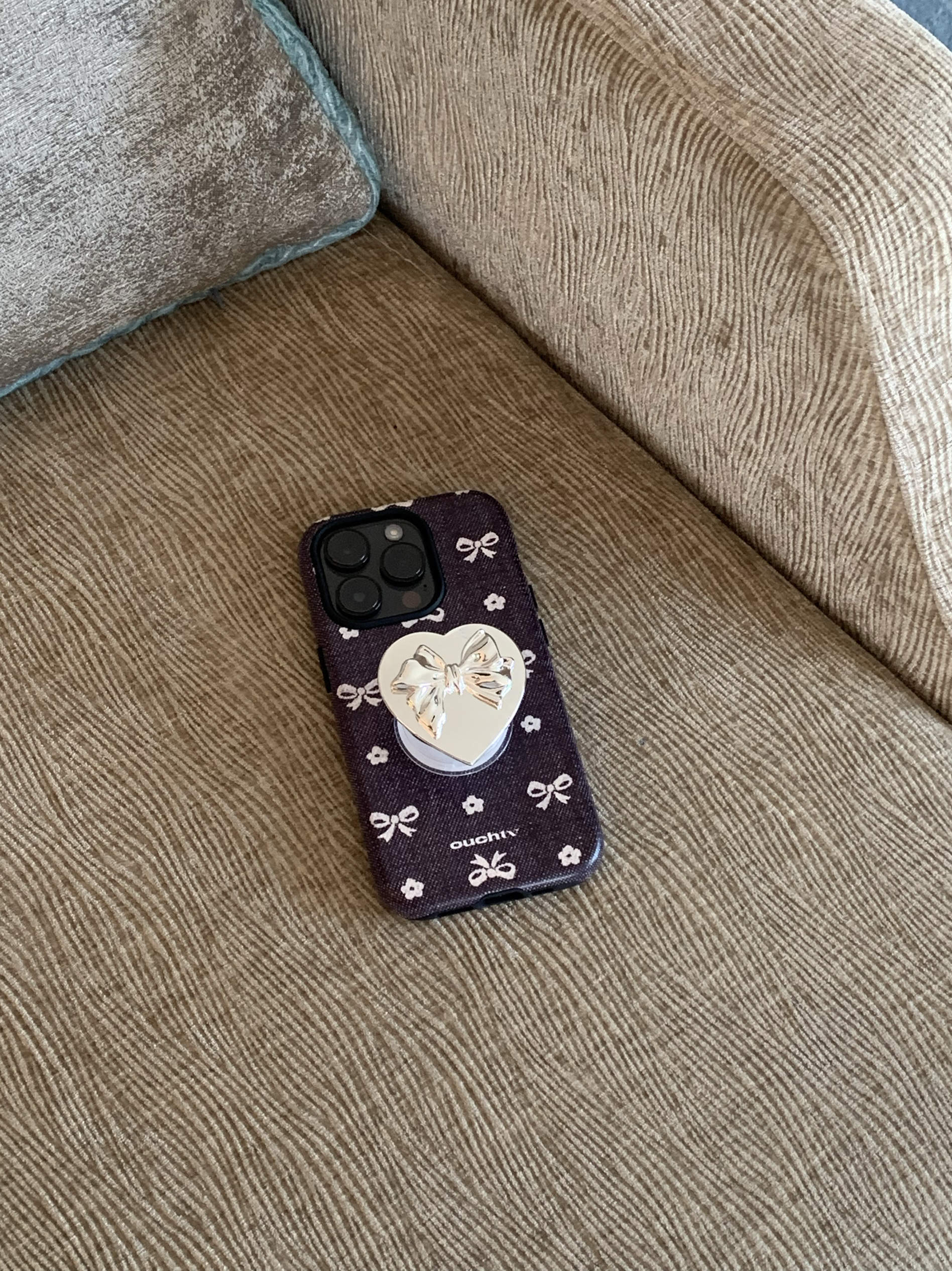 顺丰发货【ouchtv原创】复古少女感蝴蝶结牛仔印花韩国进口菲林二合一全包边适用于苹果手机17promax