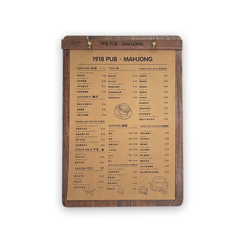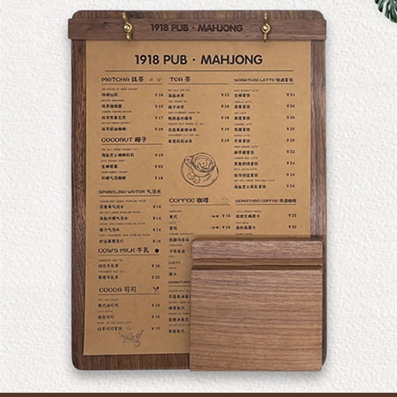 菜单夹胡桃实木设计定制菜单价目表制作A4菜单板咖啡奶茶店展示牌