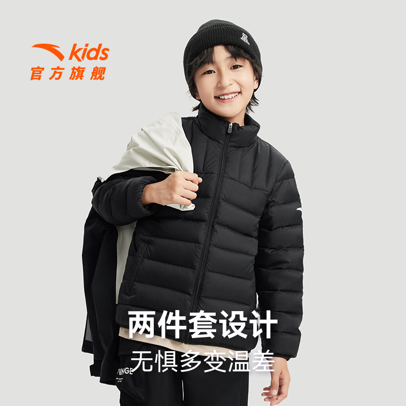 安踏儿童大地之壳冲锋衣羽绒两件套秋冬保暖防风防水三合一外套潮