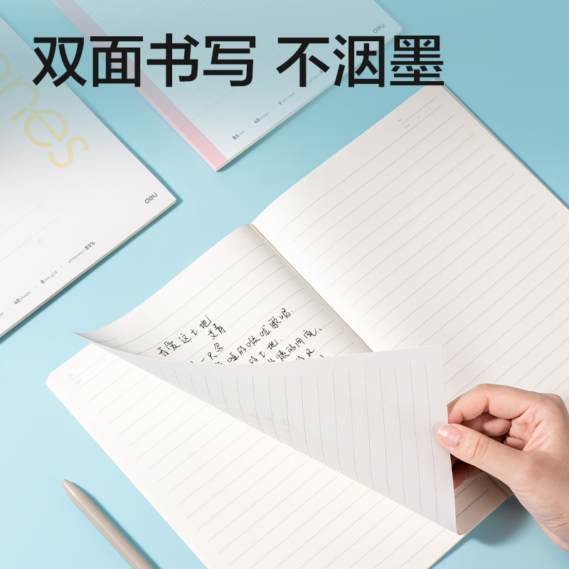 得力学科错题笔记本B5无线装订英语横线宽行分科目课堂笔记学生回家作业记录本作文日记平摊加厚A5记事软抄本