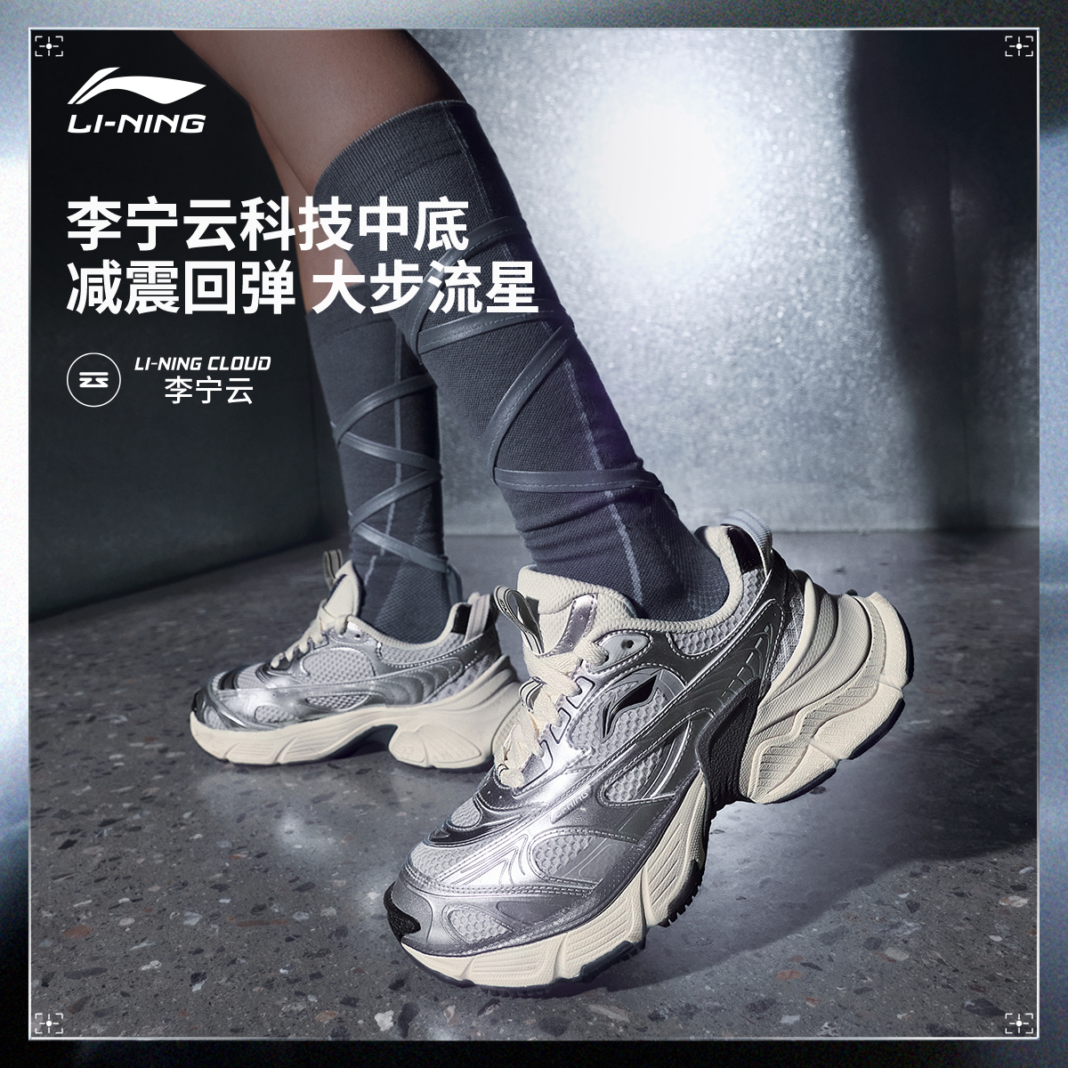 李宁星际丨休闲鞋女鞋2025秋冬新款银色老爹鞋厚底增高运动鞋女款