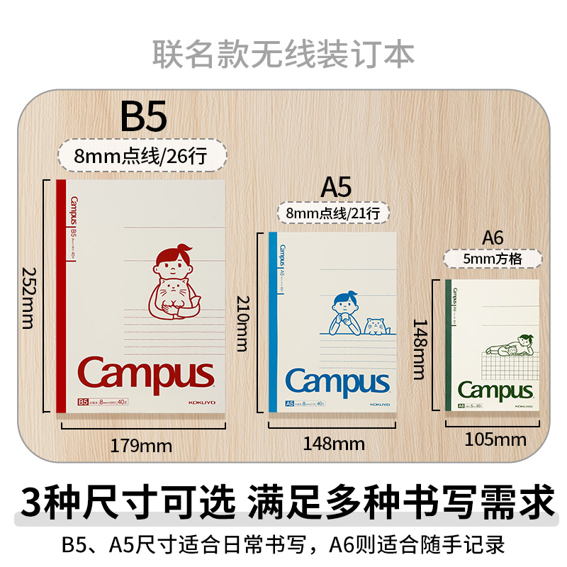 新品日本Kokuyo国誉无线装订本Noritake联名第三弹Campus笔记本本子A5学生用B5软面抄记事本A6不易硌手