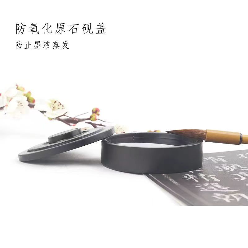 天然原石罗纹砚台带盖墨池初学者墨盒书法练习磨墨砚学生文房四宝