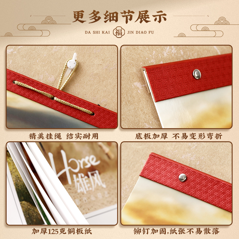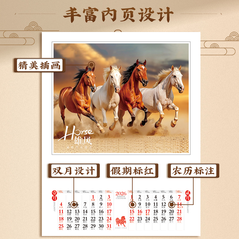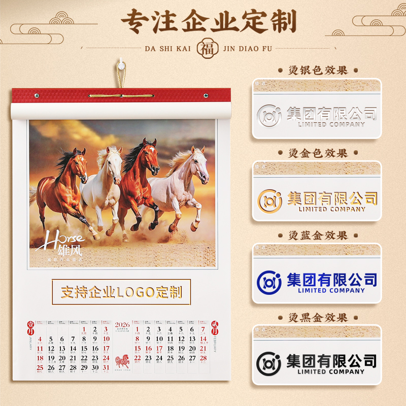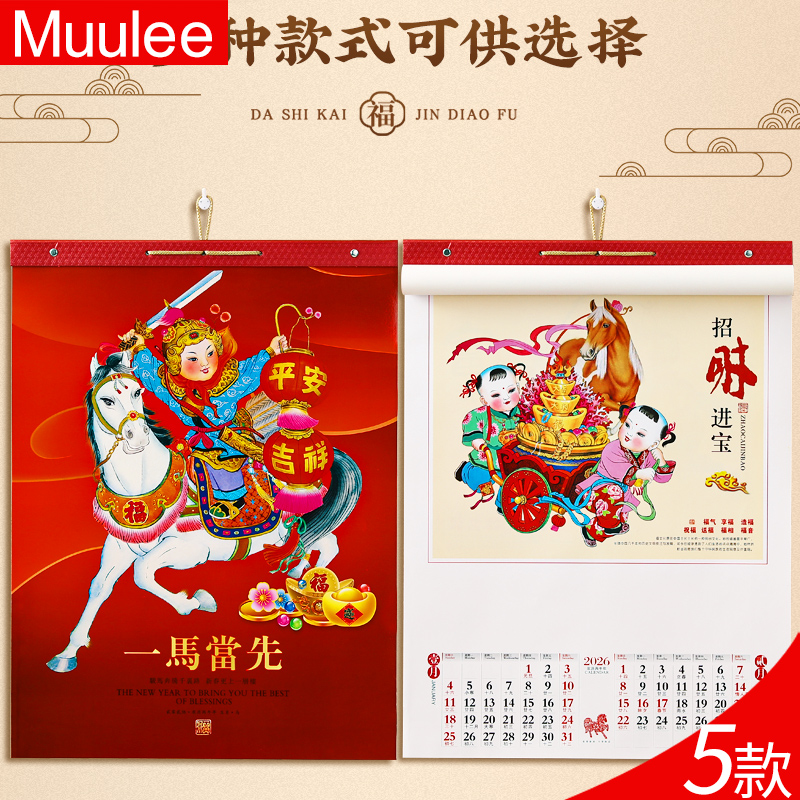 木雷2026年家用挂历定制中国风七张加固加厚清晰印刷月历定做悬挂可手撕纸质马年日历企业广告LOGO定制订做