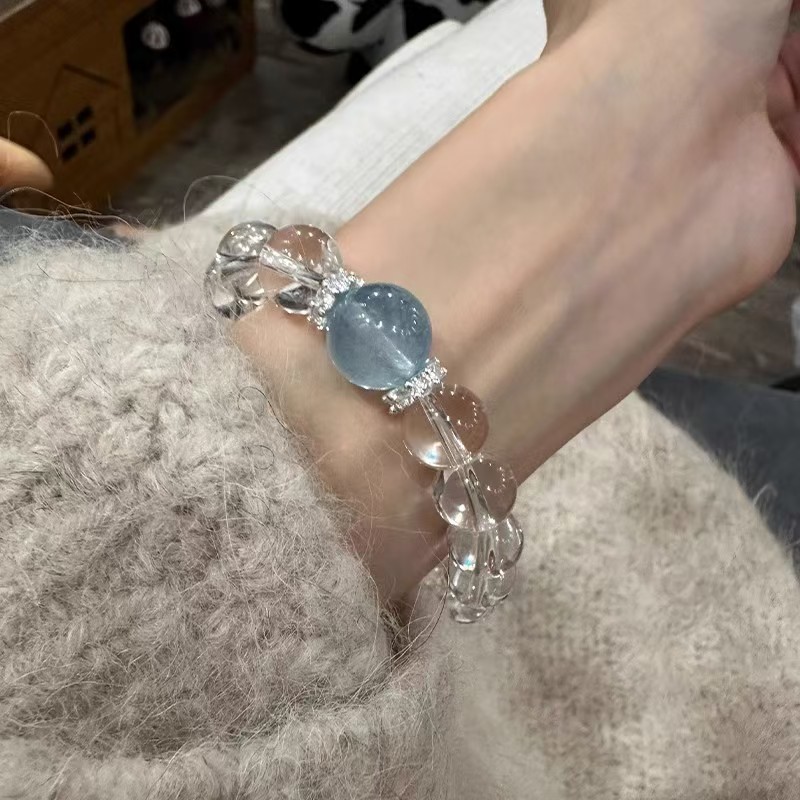 海蓝宝白水晶手串女手链轻奢高级感小众串珠手饰蓝琉璃同款饰品