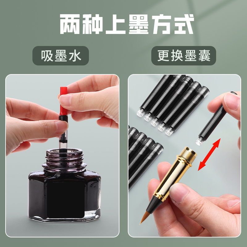 软笔书法可换墨无需研墨便携毛笔初学者神器即学即用自带墨水墨囊小毛笔秀丽笔练字专用专用笔钢笔式毛笔