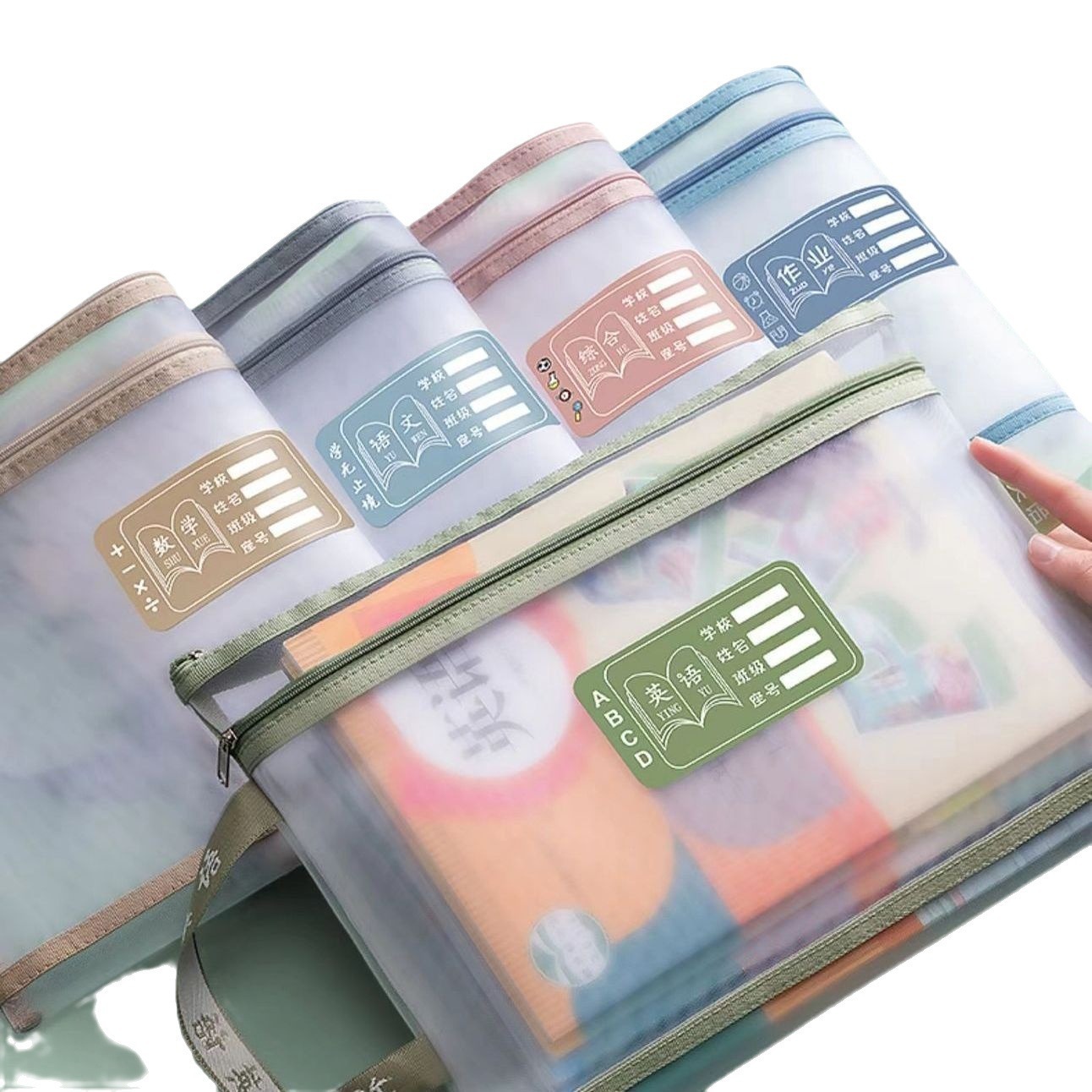 科目分类袋小学生学科袋手提拎书袋学生一年级拉链式试卷收纳袋分科整理文件袋学科课本学习资料作业开学必备