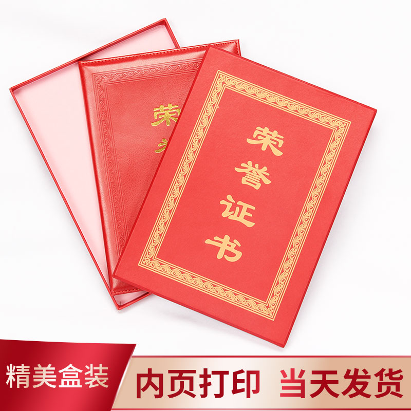 A4荣誉证书红皮质外壳定做制作内页内芯可打印定制优秀员工颁奖状优秀奖状获奖培训结业证书聘书订制批发