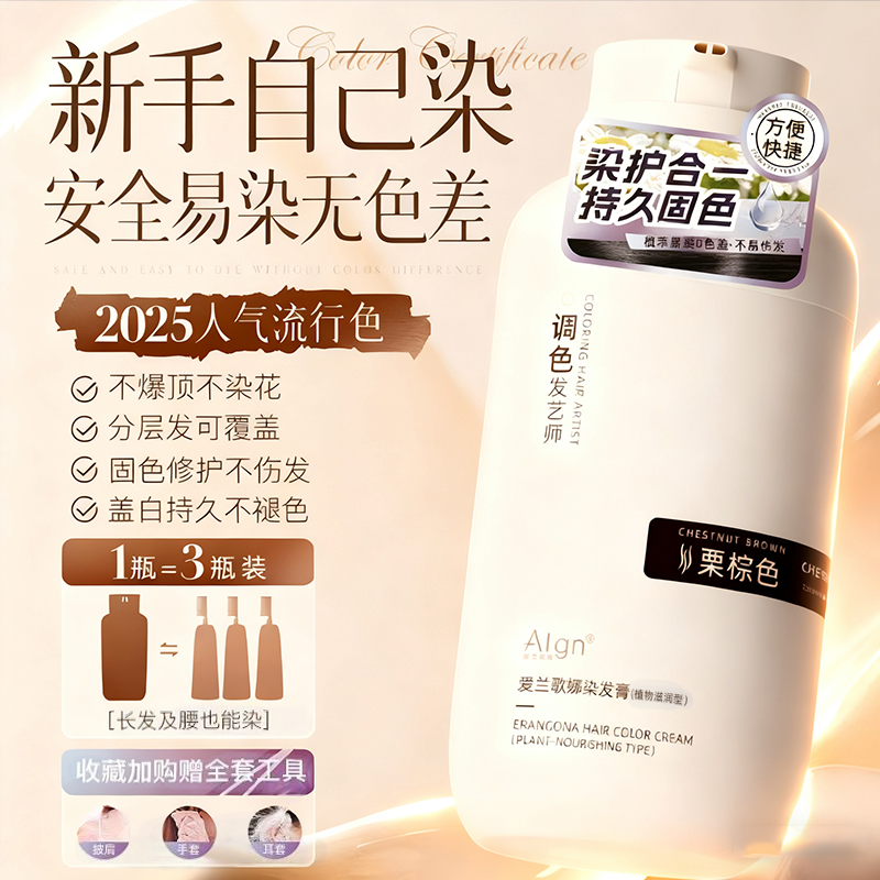 韩金靓正品染发剂黑茶色棕植物泡泡刺激无纯自己在家染发膏盖白女