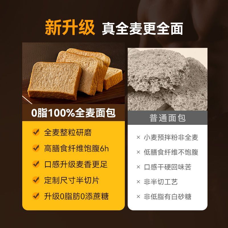 麦小饱全麦面包黑麦纯无蔗糖0脂荞麦粗粮健身减早代餐肥营养吐司