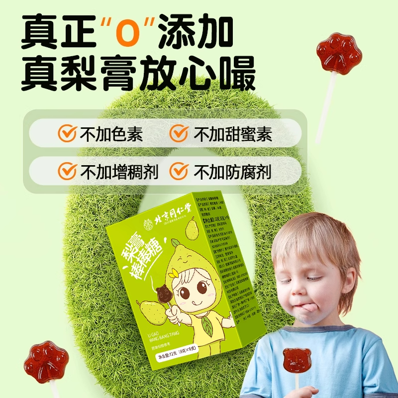 北京同仁堂秋梨膏棒棒糖儿童无添加梨膏糖润喉化痰止咳零食信盛堂