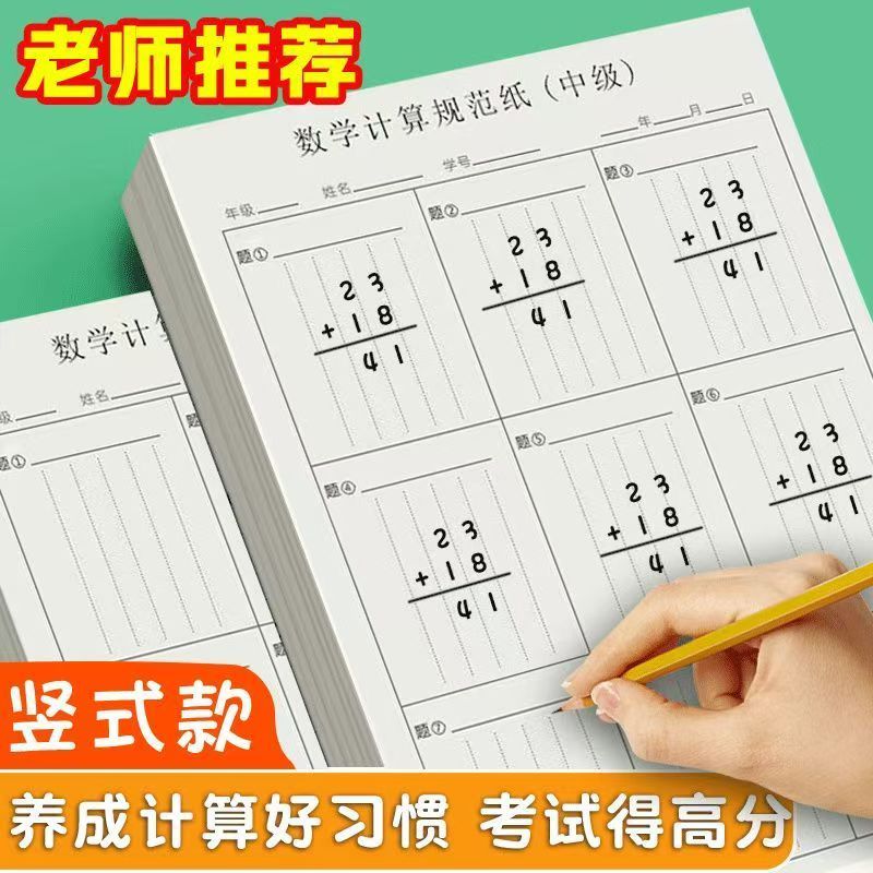 竖式数学分区草稿本对齐专用小学生练习计算数位运算演算草稿纸开学高级中级规范