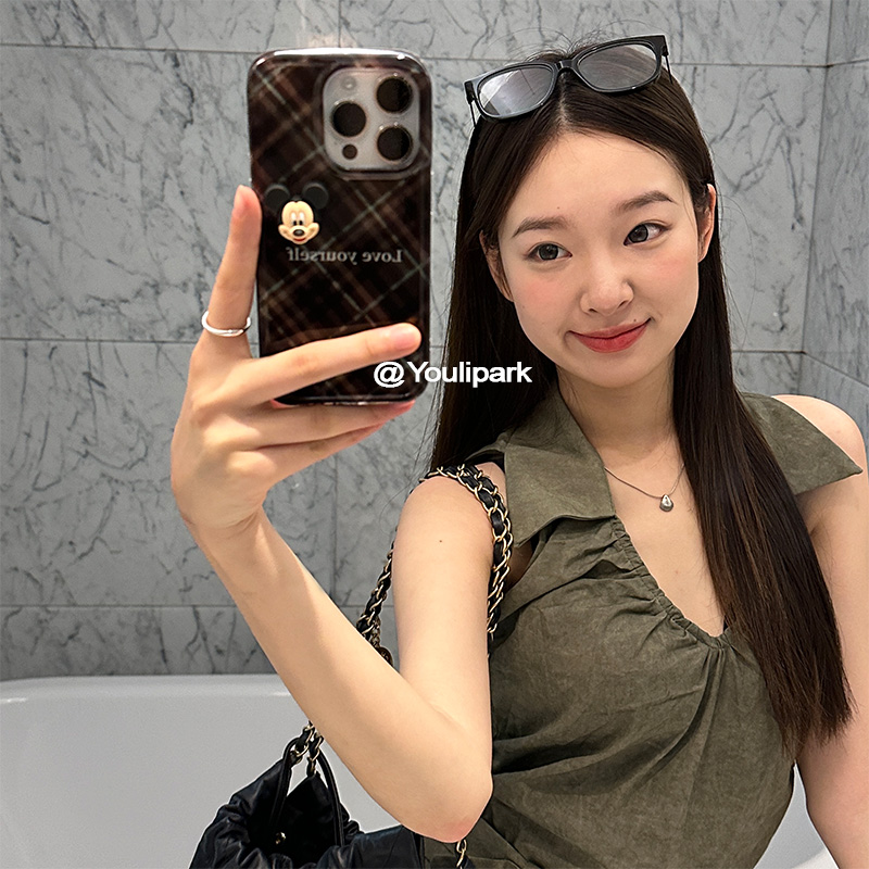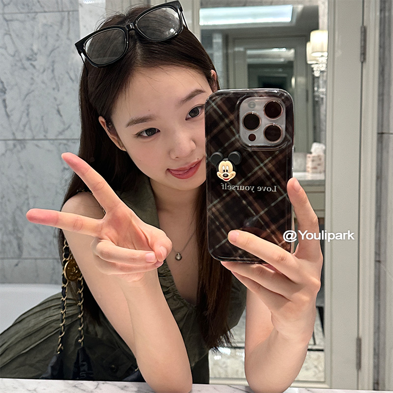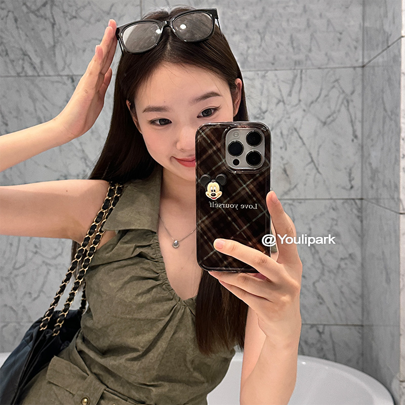 由里公园ins早秋复古棕色格纹立体卡通适用16苹果17ProMax手机壳iPhone17全包新款17Pro软14Promax防摔保护套