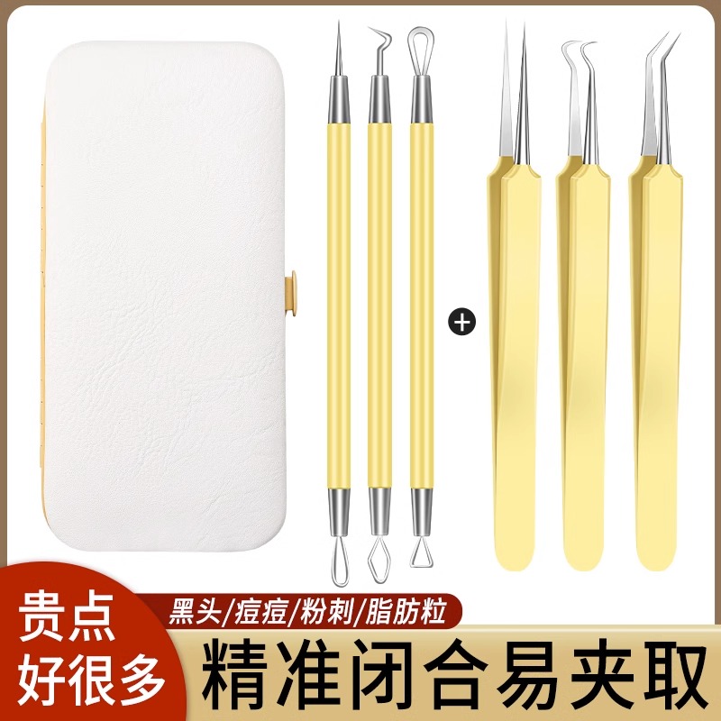 精工粉刺针刮闭口针细胞夹黑头超细挤痘痘工具套装美容院专用镊子