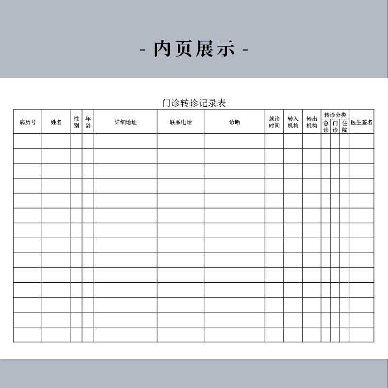 门诊转诊记录本医疗机构发热病人就诊登记本检分诊登记传染病患者转诊记录本转院登记簿门诊工作日志登记簿预