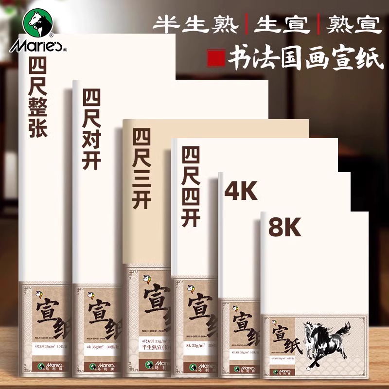 马利牌熟宣纸4开8开书法专用纸半生入门半生半熟书画宣纸4K8K作品