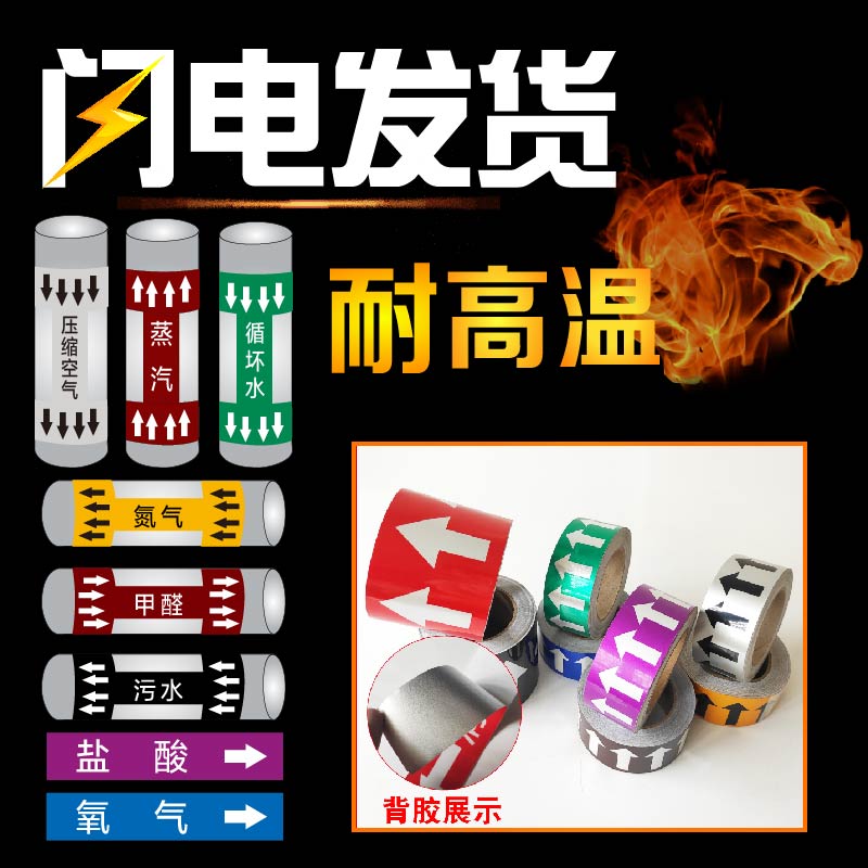 管道标识贴纸标识牌压缩空气管道标识流向箭头色环介质流向标天然气管道标识常开常闭标识牌消防管道标识定制