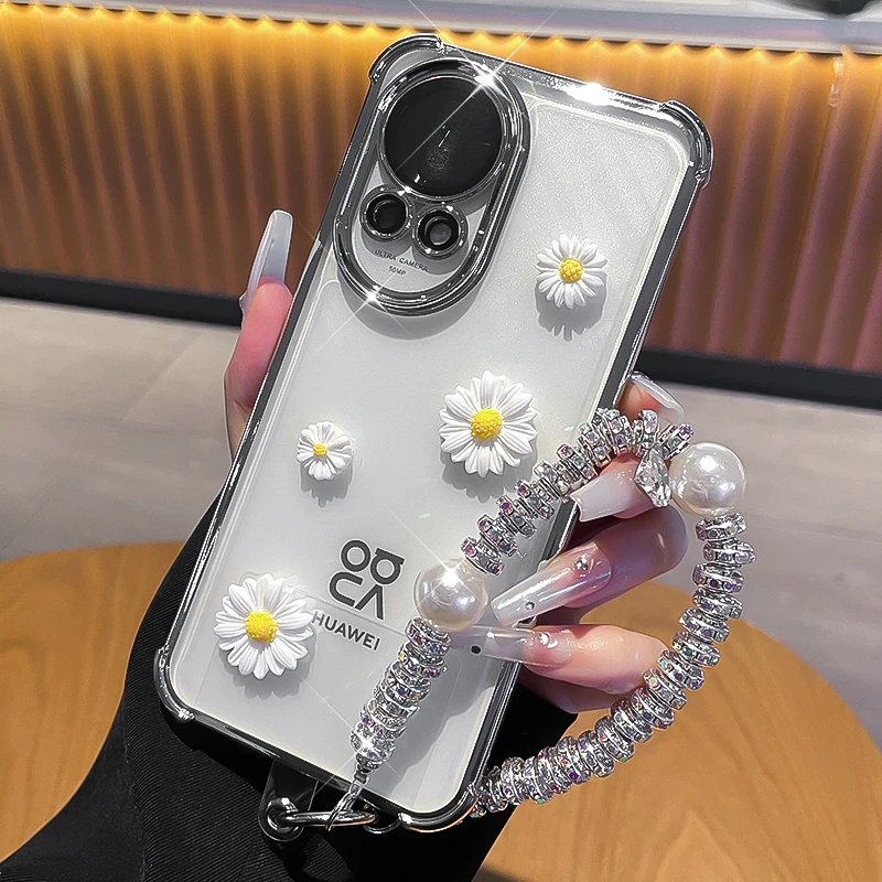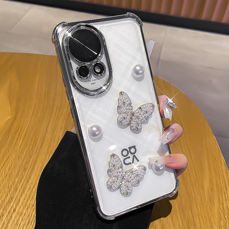 珍珠蝴蝶自带镜头膜气囊壳适用华为苹果oppo荣耀手机壳新款高级感Nova13Pro女简约ins风手链防摔气囊保护壳
