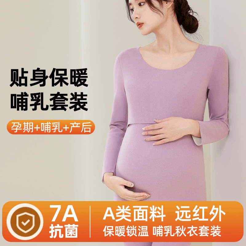 婧麒孕妇秋衣秋裤套装保暖内衣孕期打底产后哺乳喂奶大码月子服冬