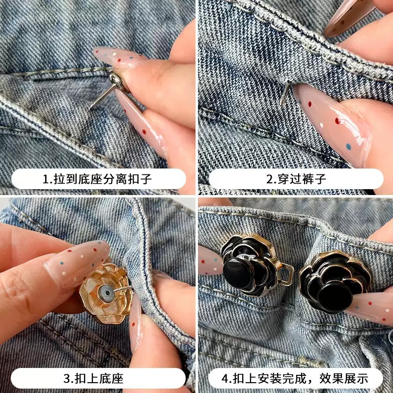 山茶花玫瑰牛仔裤收紧神器胸针大了改小调节纽扣免缝可拆卸收腰扣