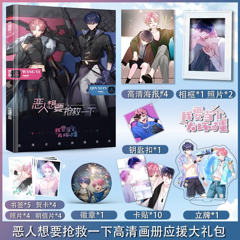 恶人想要抢救一下周边画册集海报钥匙扣立牌卡贴徽章相框大礼包
