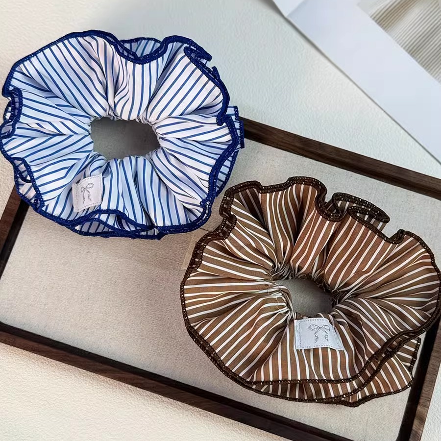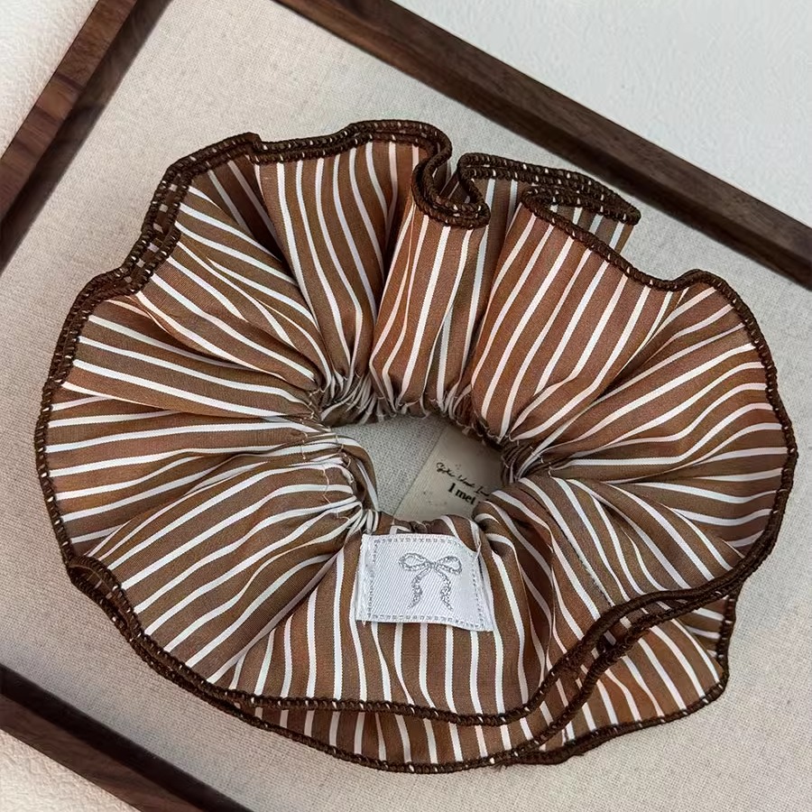 复古咖色条纹大肠发圈高级感公主头绳韩系慵懒风发绳丸子头发饰