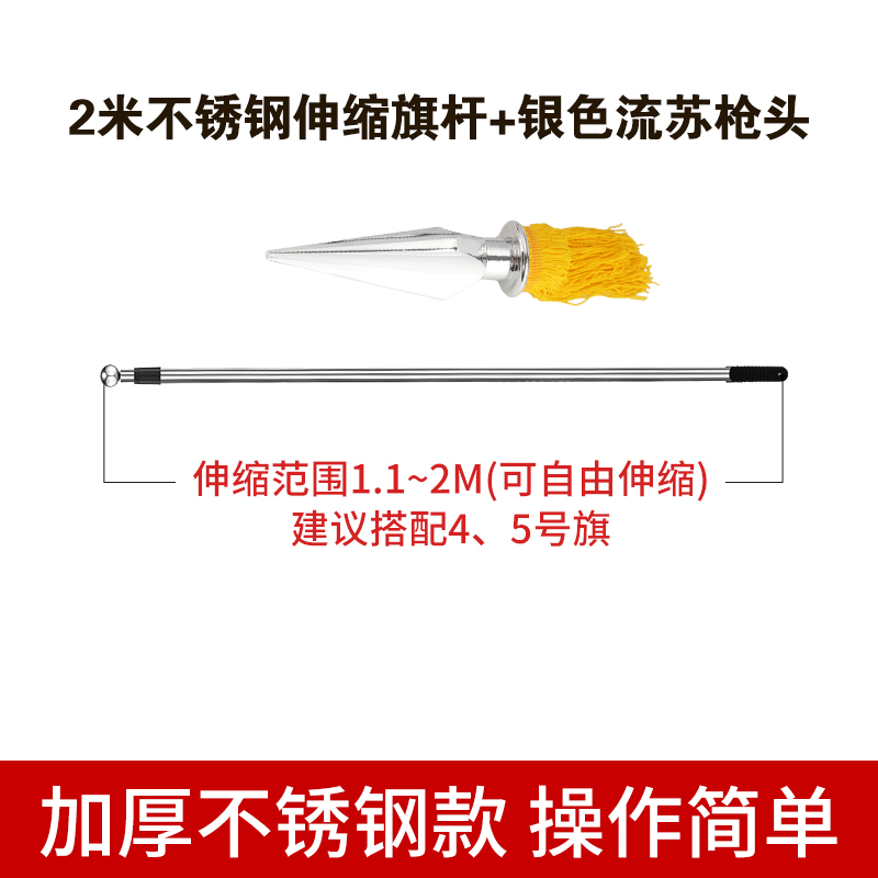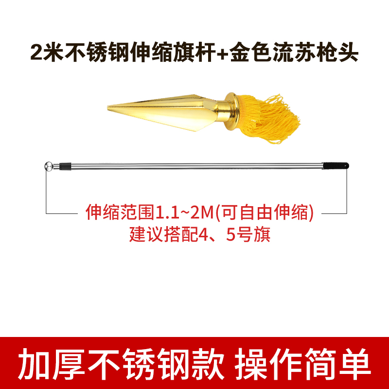 仪仗队旗杆伸缩旗杆红旗手持2m旗杆带穗枪头检阅消防救援旗杆手持擎旗杆授旗杆伸缩金舞台运动会表演流苏旗杆
