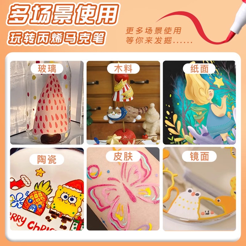 晨光丙烯马克笔学生美术专用不透色可叠色彩笔儿童幼儿无毒水彩笔