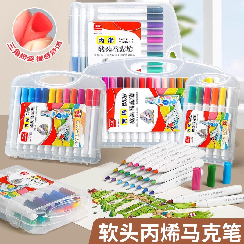 直液式丙烯马克笔48色儿童美术专用小学生用马克笔diy可叠色软头丙烯笔可水洗安全水彩笔咕卡笔24色36画画笔