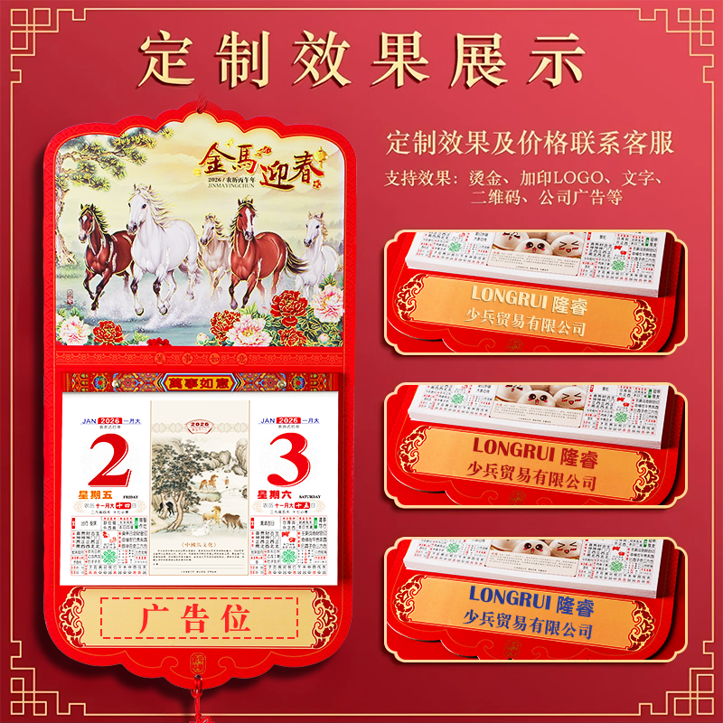 2026年挂历定制高档家用日历马年创意黄历礼盒装手撕日历双日彩色皇历公司礼品订制LOGO定做