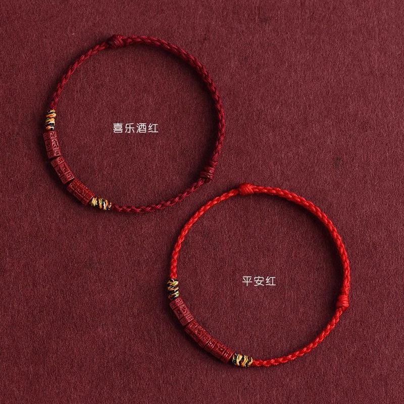 泛洛轻朱砂六字真言红绳手链男女本命年转运五彩手绳送家人